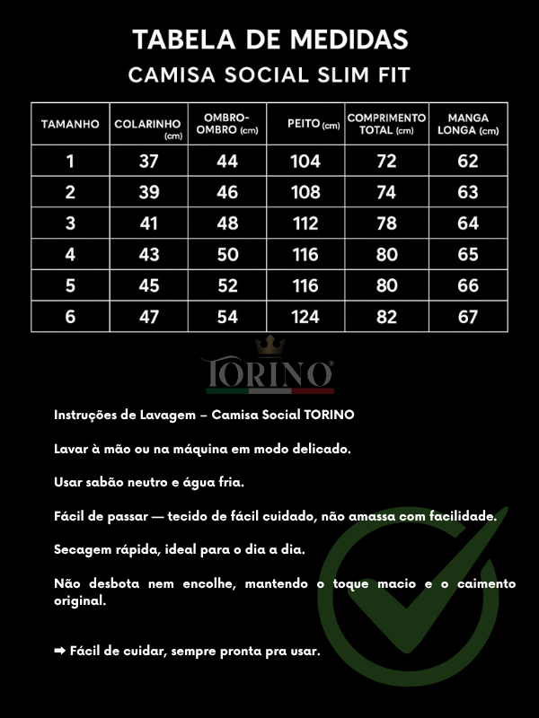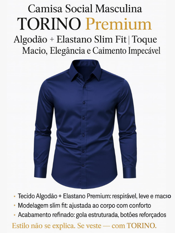 A Camisa Social TORINO foi criada para o homem moderno que busca elegância, conforto e um caimento impecável.
