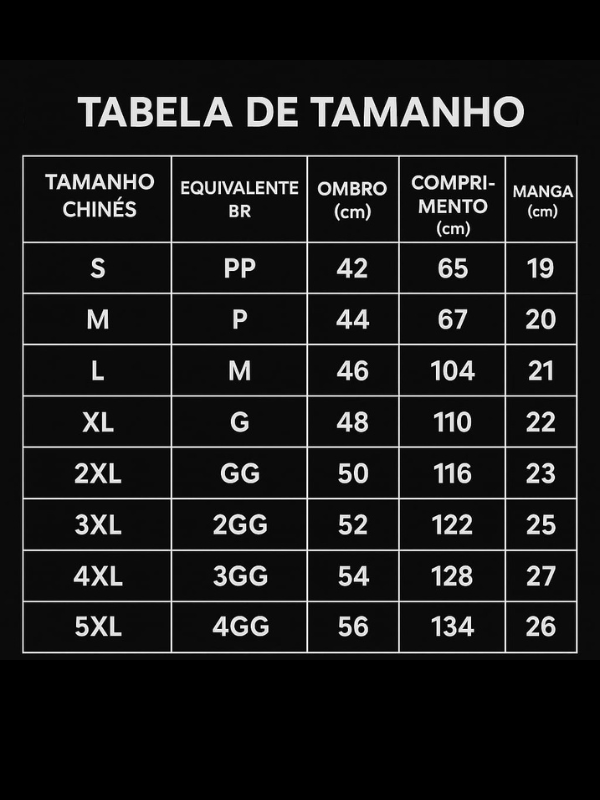 Tabela de Medidas (Modelagem Slim Fit – Tamanhos Reais)