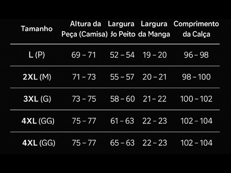 Basta seguir a tabela acima — a modelagem é real (slim fit), então escolha o tamanho que costuma usar em roupas ajustadas.
