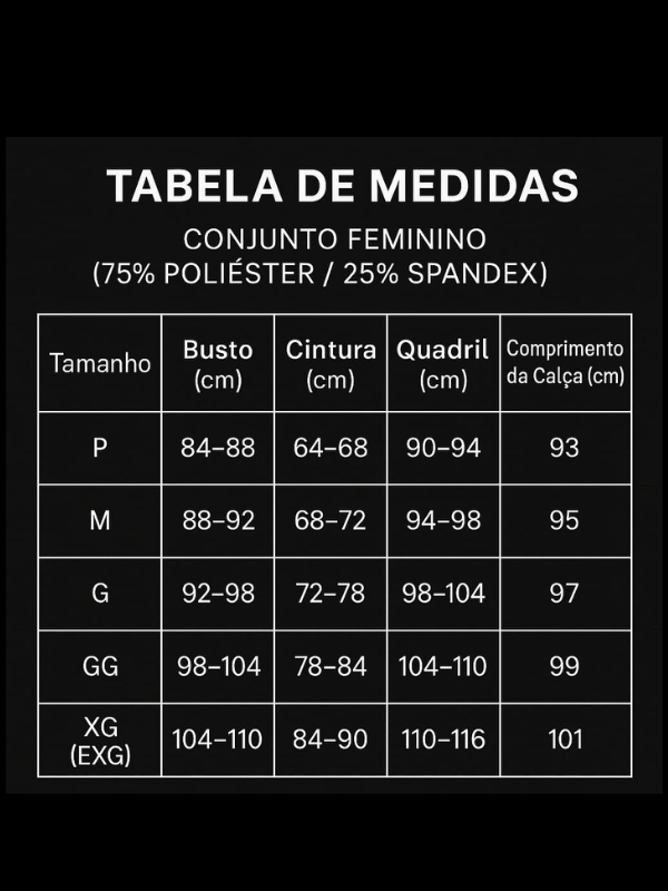O Conjunto Feminino TORINO Malha Fria Neoprene é a escolha certa pra quem quer estilo, conforto e tecnologia no mesmo look.